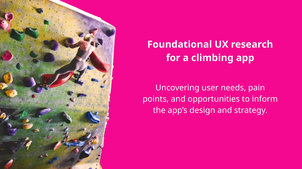 Foundational UX research exploring how climbers track progress and connect with their community, and how route setters manage their work, to identify opportunities for improving the app experience for both user groups.