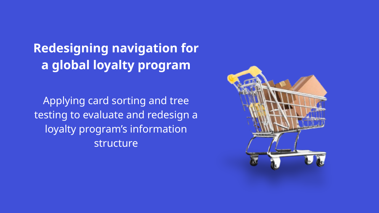 A UX research project using card sorting and tree testing to restructure navigation, enhance information architecture, and support user understanding and discovery of loyalty benefits.